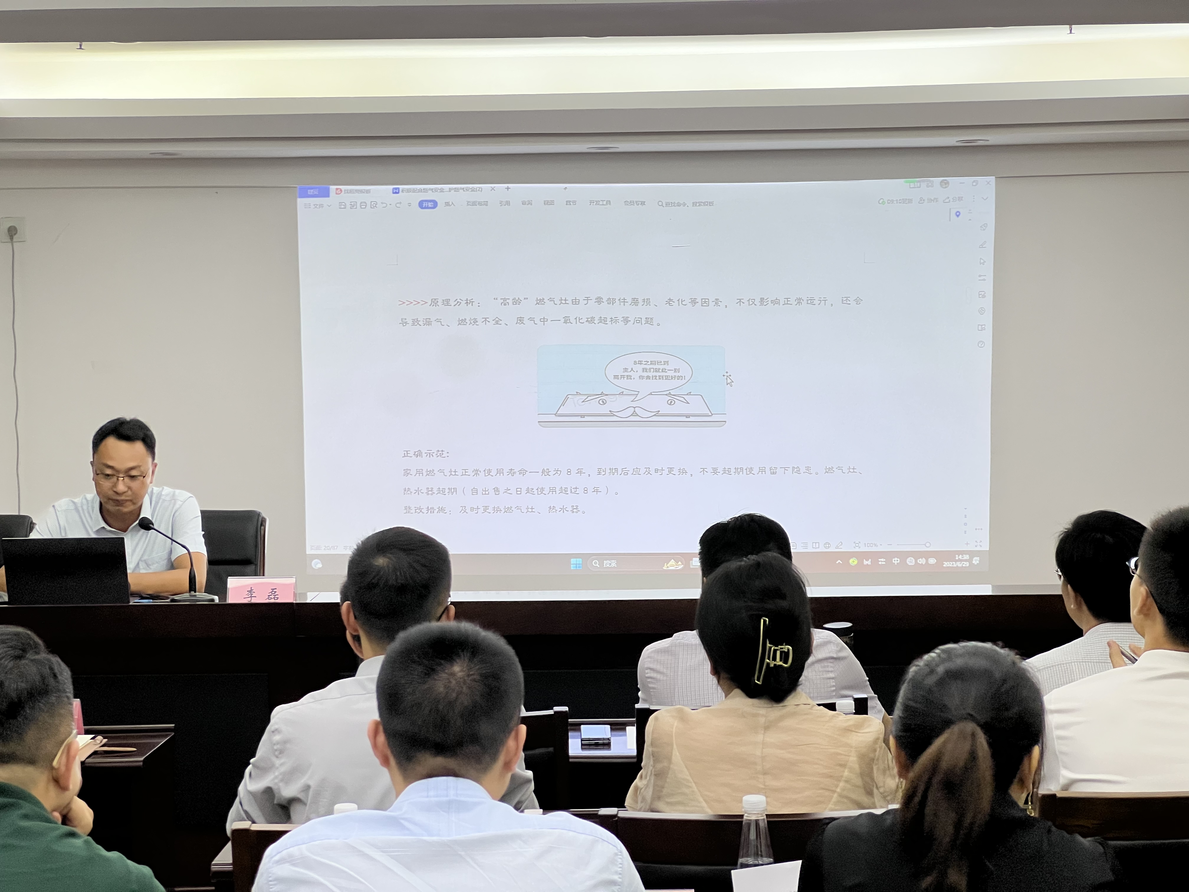 會(huì)上邀請(qǐng)市公用事業(yè)集團(tuán)技術(shù)信息中心負(fù)責(zé)人李磊講解培訓(xùn)燃?xì)馐褂冒踩R(shí),并觀看了警示教育片《生命重于泰山》。