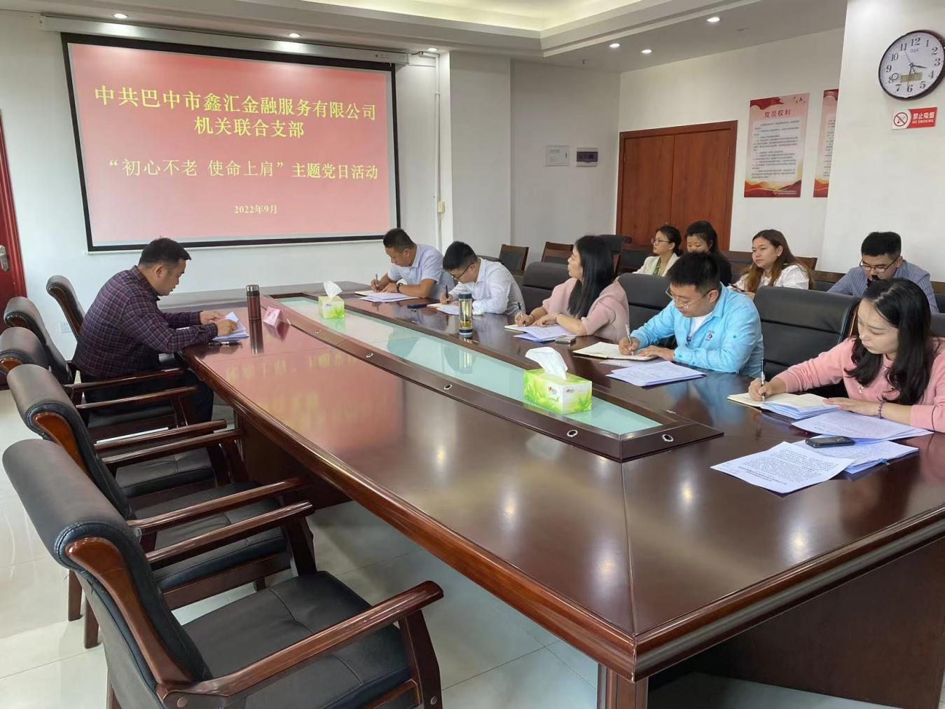 為進(jìn)一步加強(qiáng)基層黨組織建設(shè),切實(shí)發(fā)揮黨員干部的先鋒模范作用,9月28日,中共巴中市鑫匯金融服務(wù)有限公司機(jī)關(guān)聯(lián)合支部開展“初心不老 使命上肩”主題活動(dòng),機(jī)關(guān)聯(lián)合支部全體黨員、公司全體職工參加。